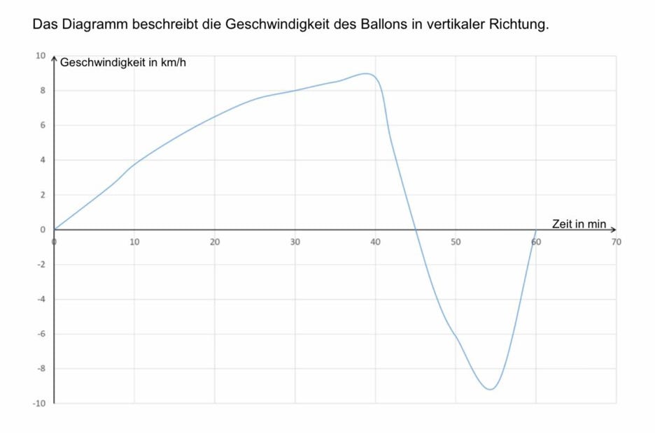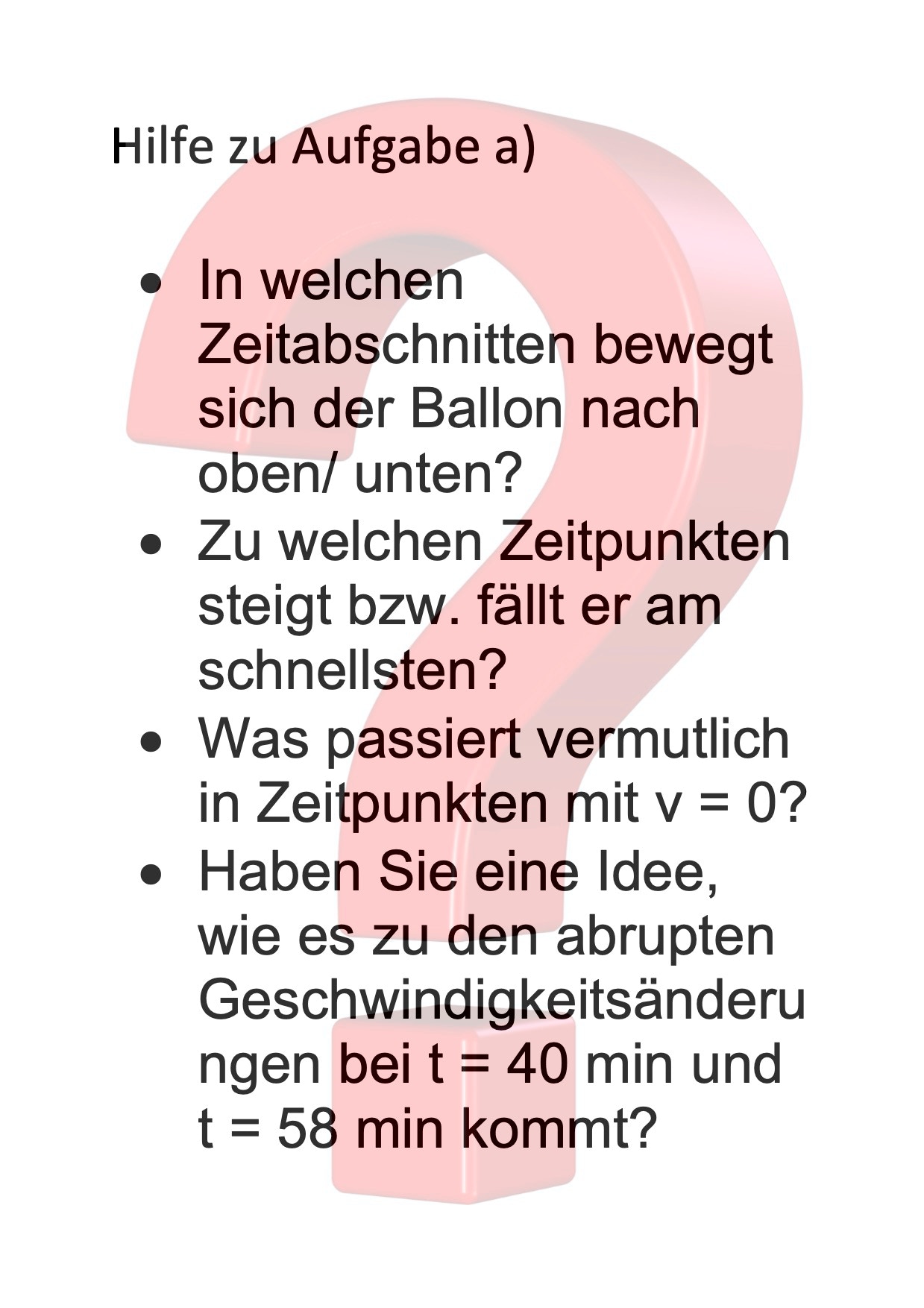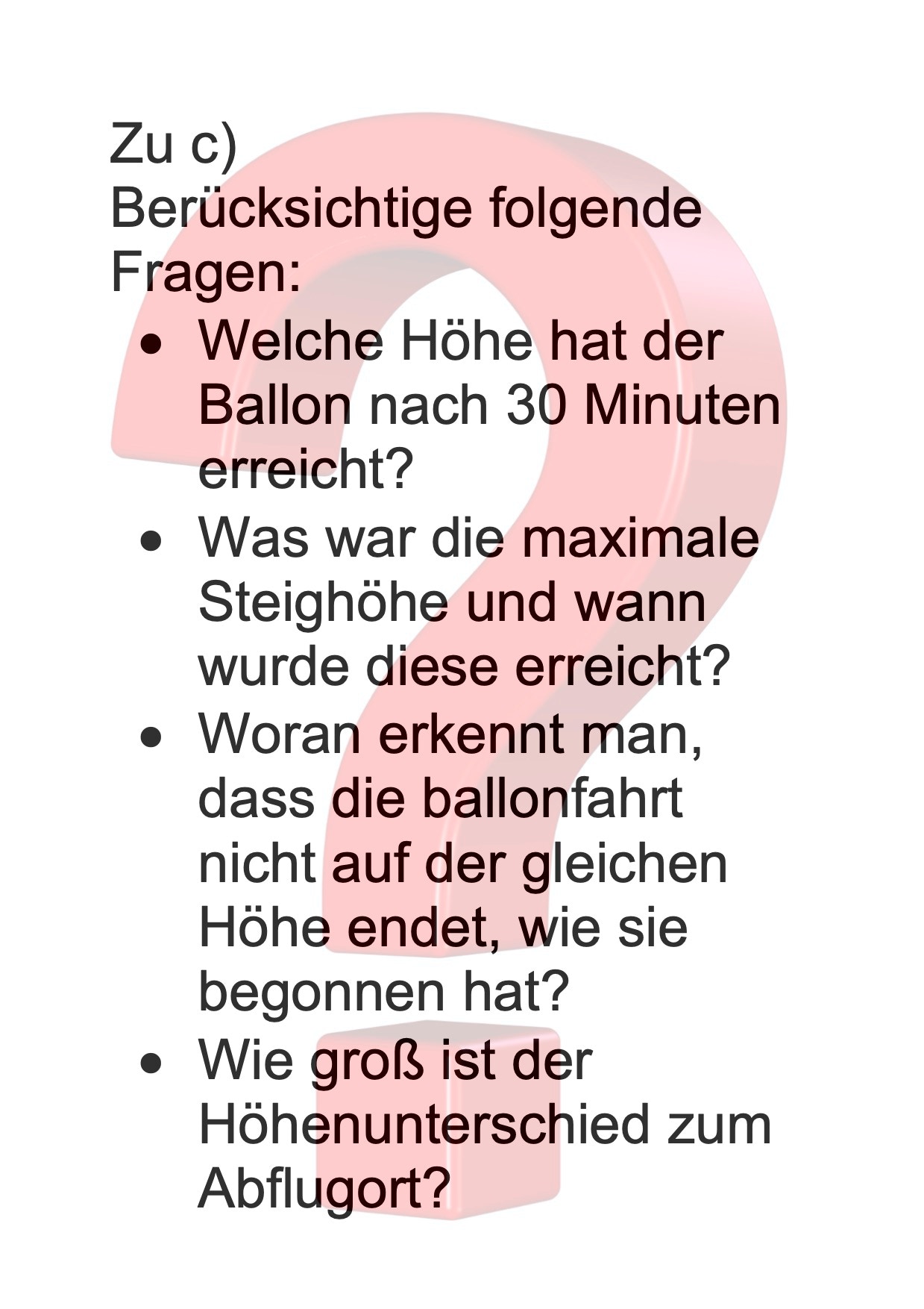 - Skizziere das Diagramm Zeit -> Höhenunterschied zum Abflugort des Heißluftballons in ein geeignetes Koordinatensystem.